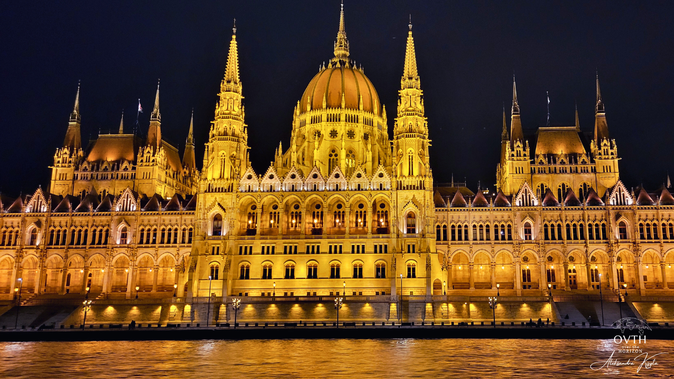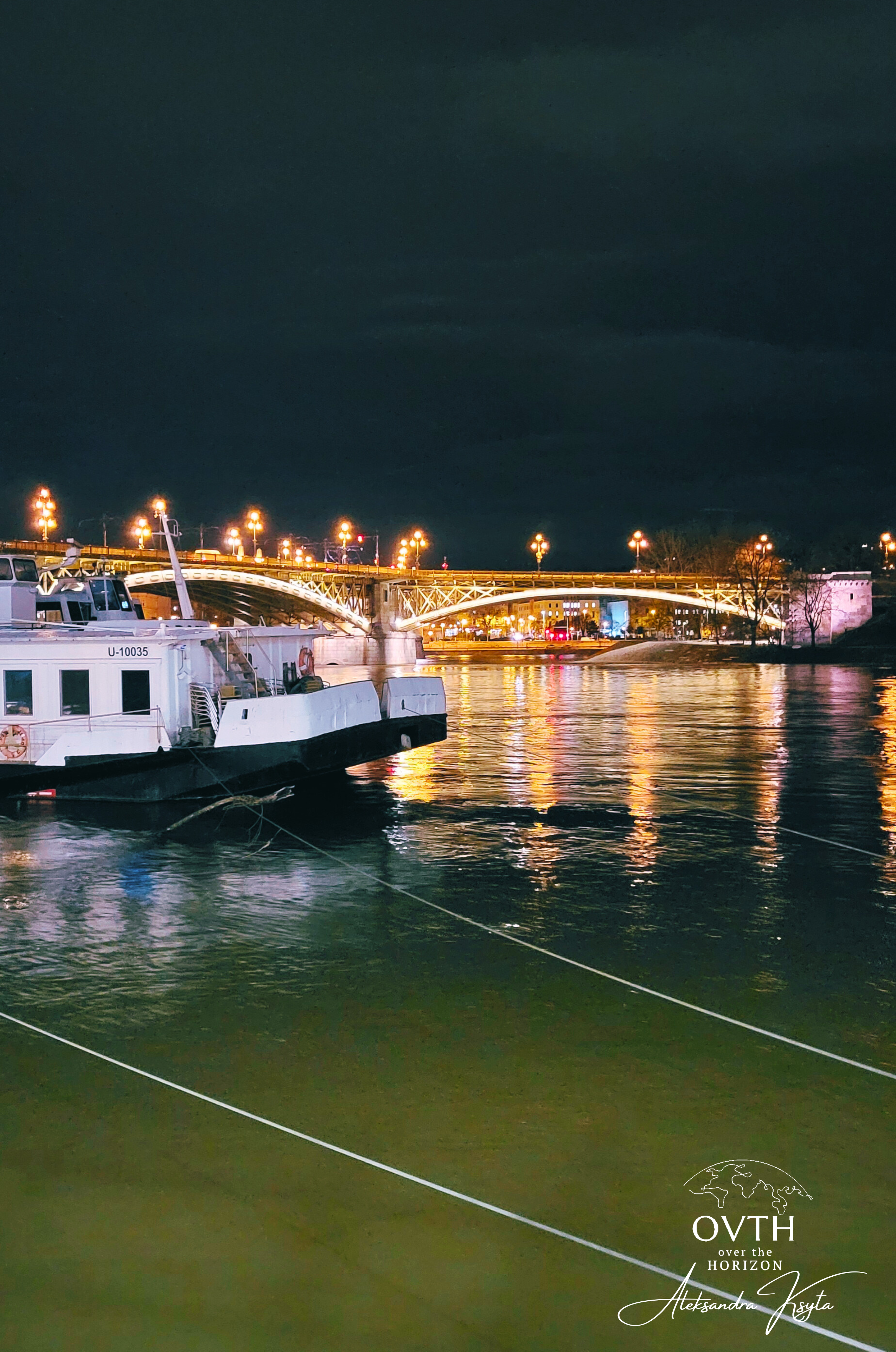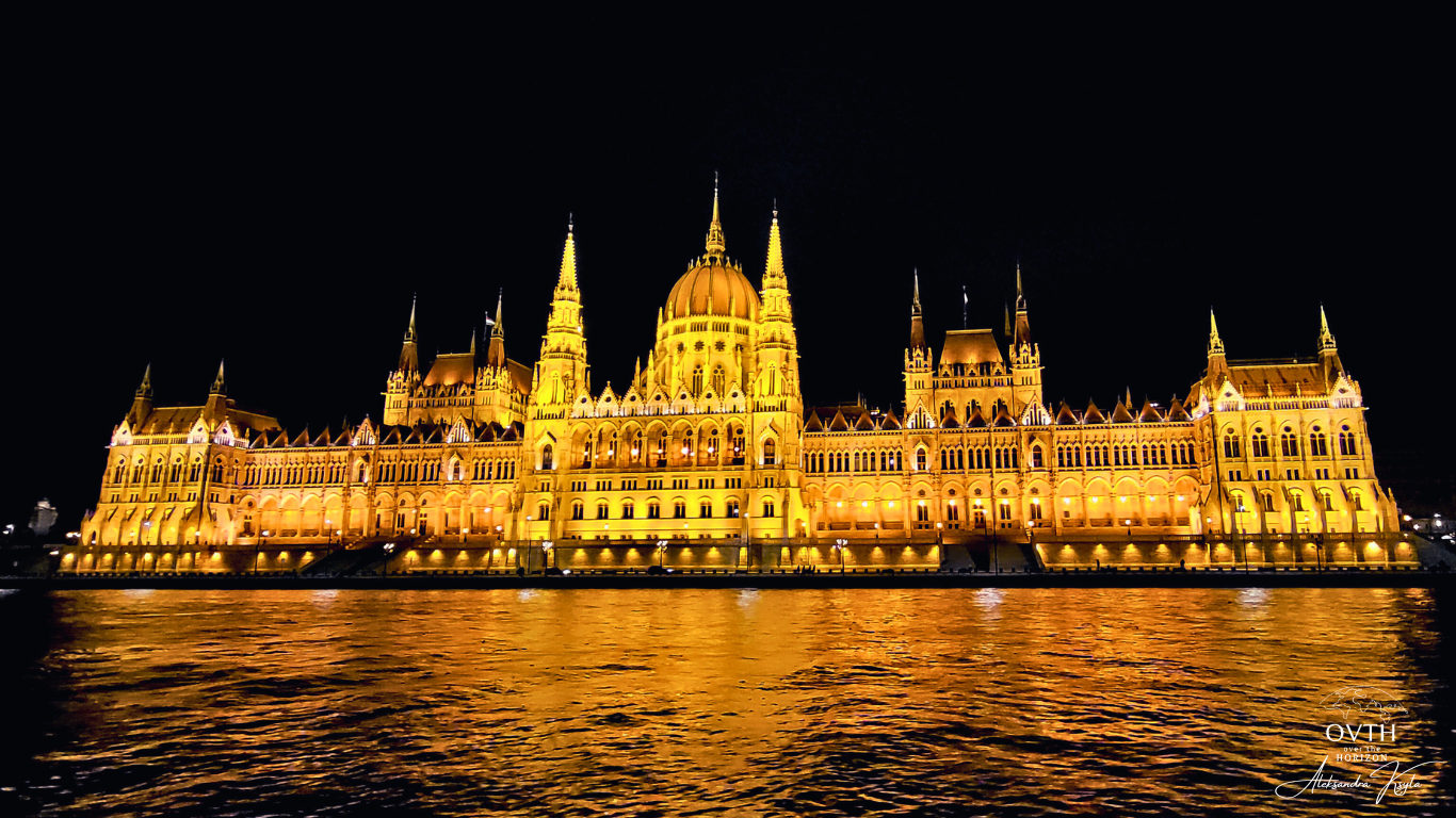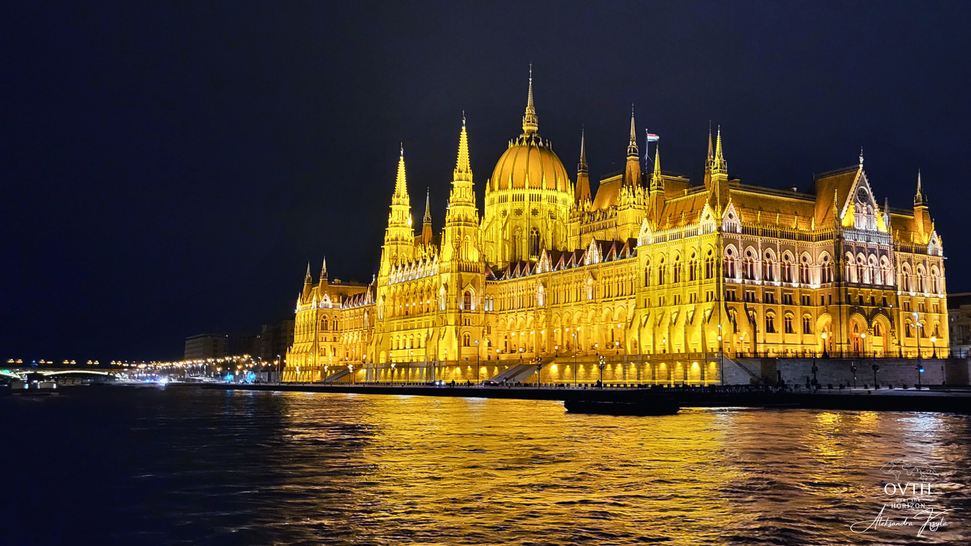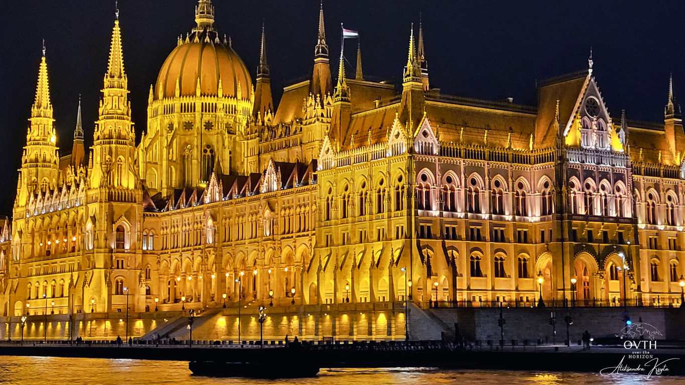 Miałam okazję podziwiać go nocą z poziomu Dunaju, gdy rozświetla się tysiącami świateł. Blask lamp odbijający się w chłodnej tafli wody nadaje jej ciepły, złoty i lekko różowy odcień, tworząc hipnotyzującą grę świateł w najróżniejszych tonacjach.