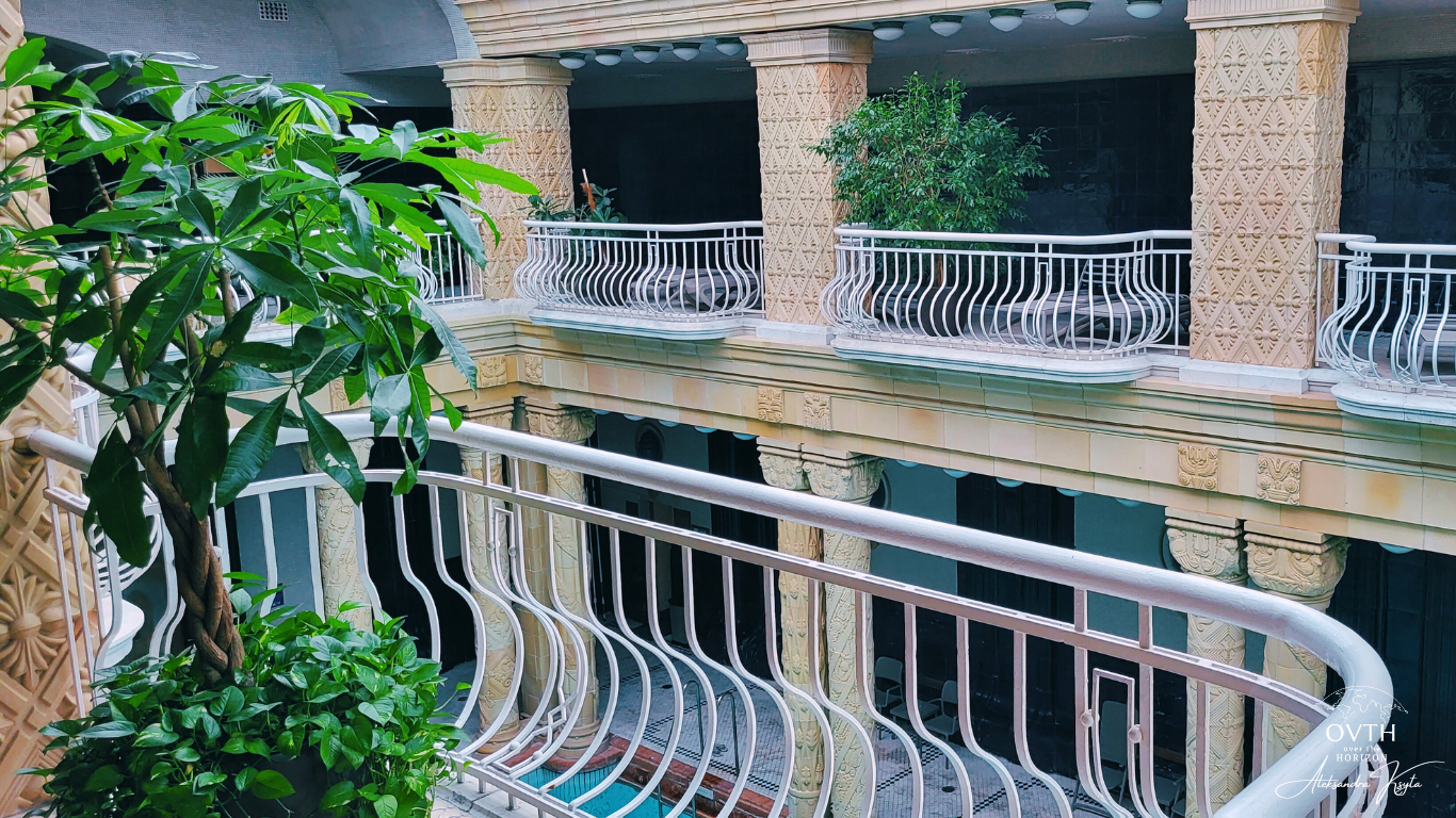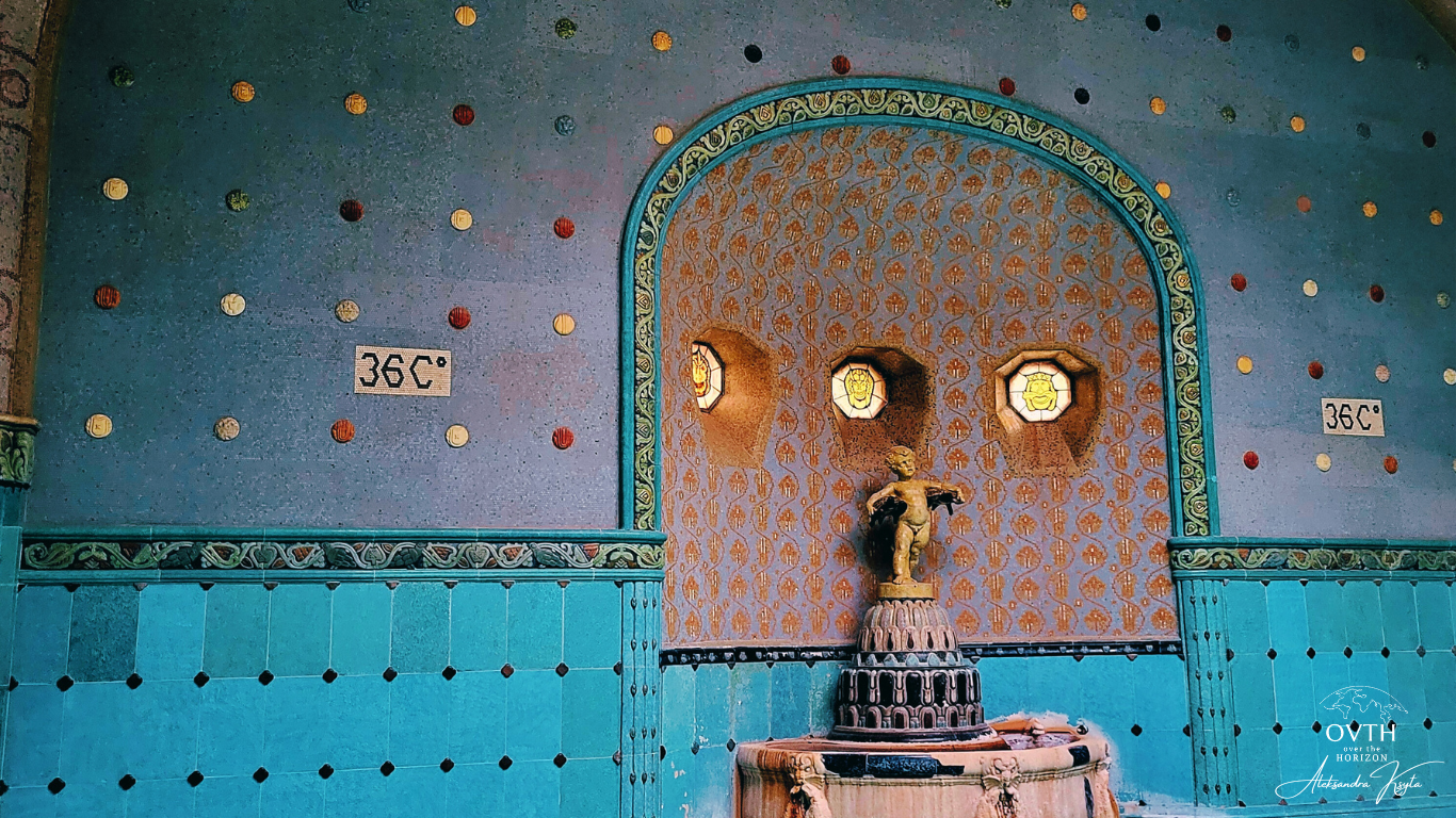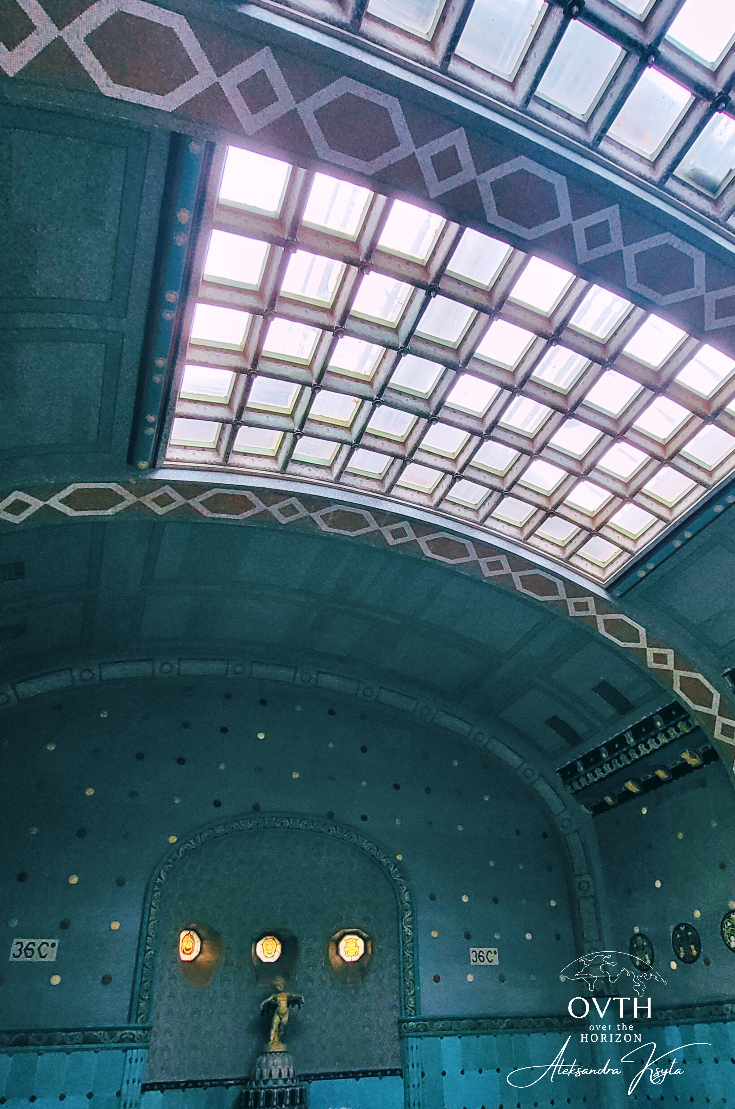 Oprócz leczniczych korzyści, nie umknęła mojej uwadze architektura tego miejsca. Rozkoszując się kąpielą w basenie głównego holu, dostrzec możemy dumnie wyrastające spod tafli wody kolumnady, nad nimi ozdobne balkony otoczone zielenią, a gdy zadrzemy głowę jeszcze wyżej, podziwiać możemy szklany sufit w formie kopuły, przez który wpada miękkie światło.