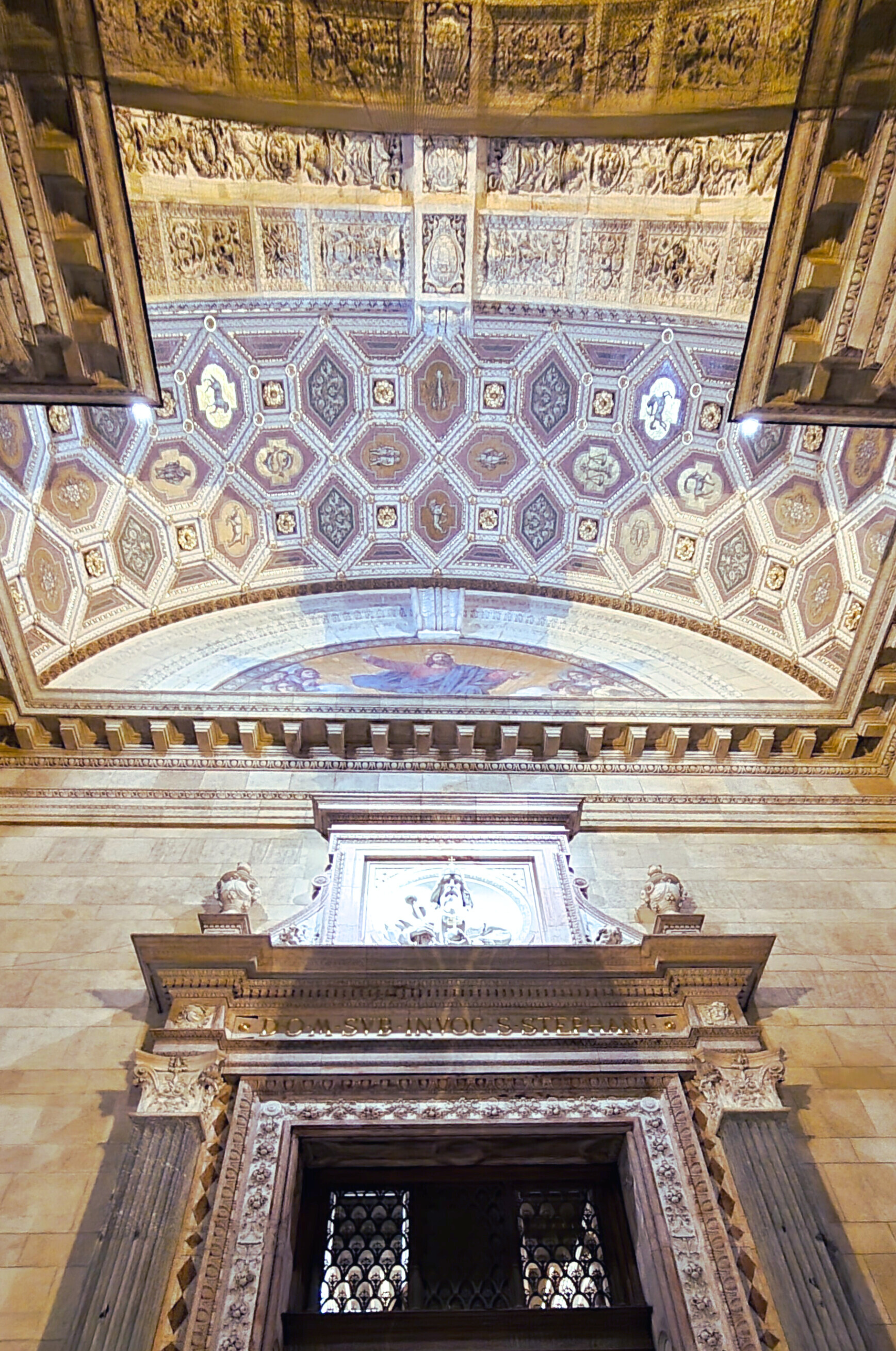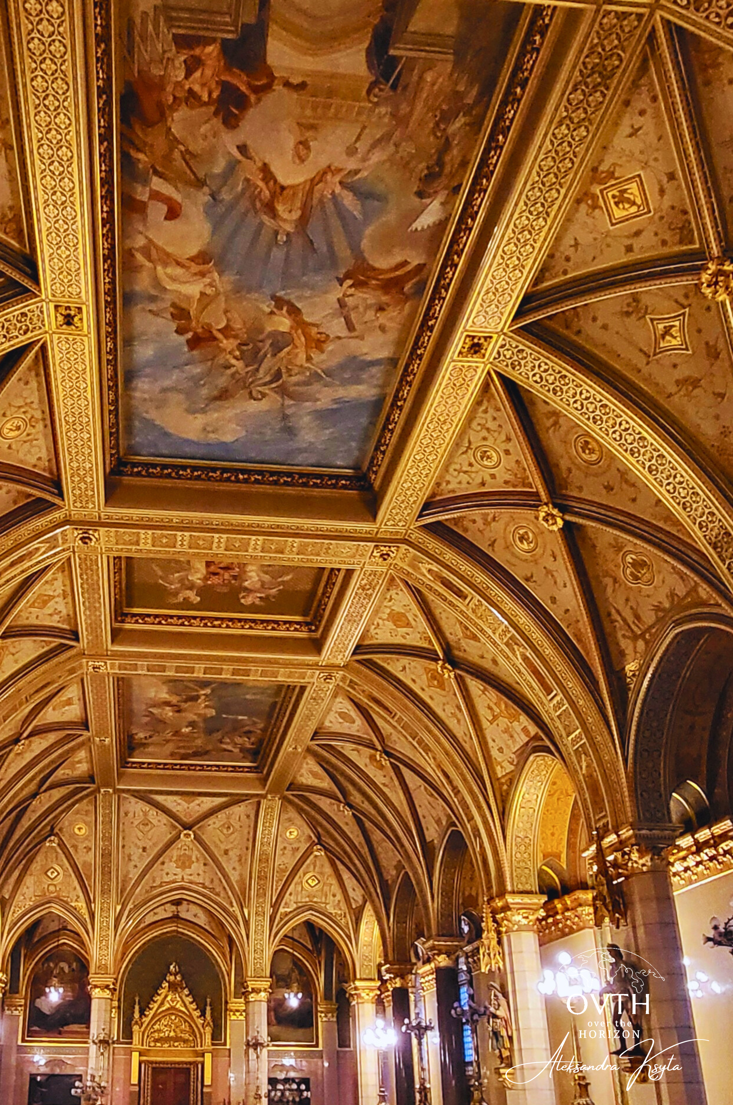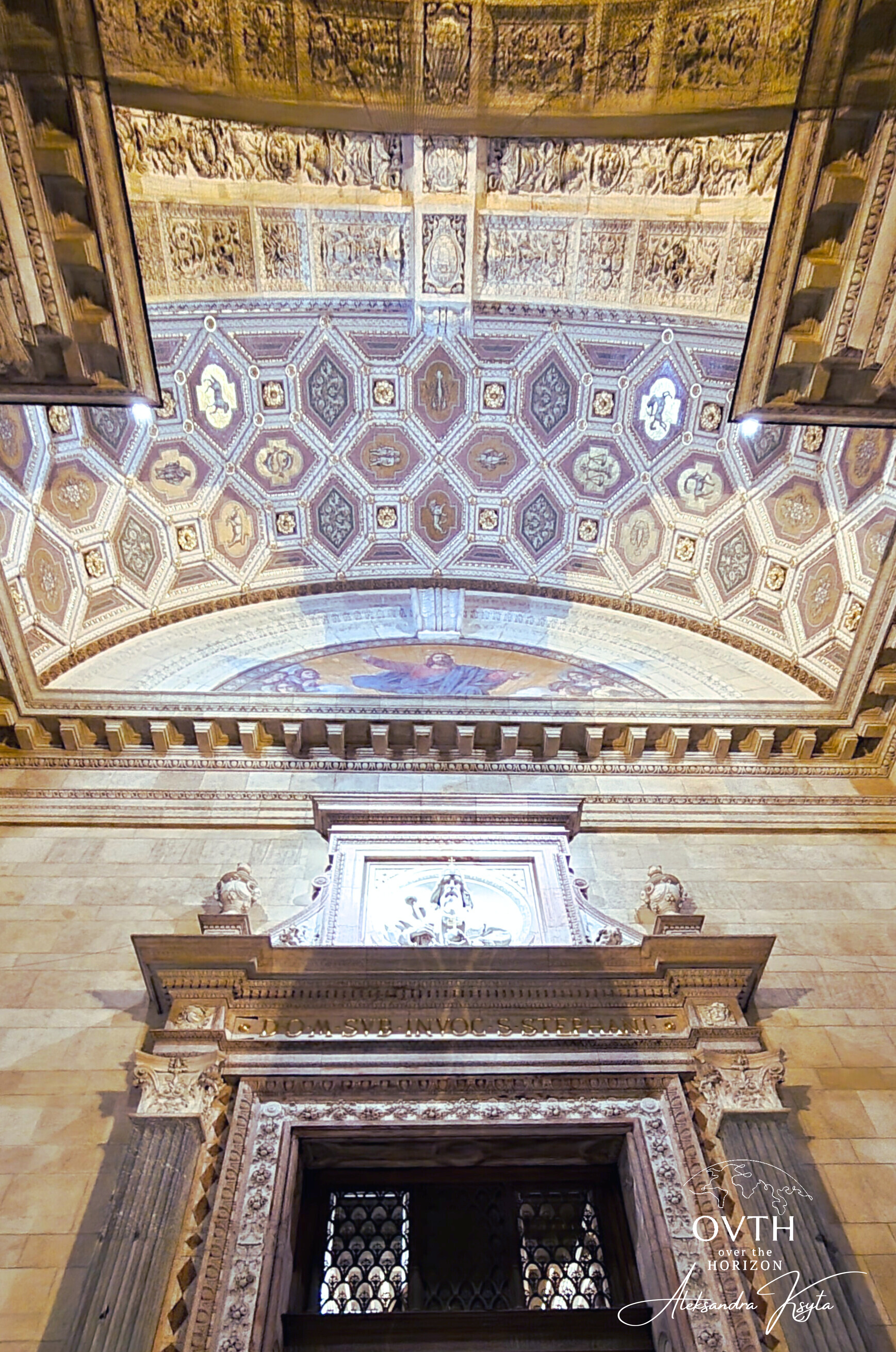 Z zewnątrz Bazylika wydaje się stosunkowo stonowana, klasycystyczna, wręcz surowa. Jednak jej wnętrze, podobnie jak w przypadku Parlamentu, skrywa bogactwo, które potrafi odebrać dech. Złoto, misterne zdobienia, freski i detale tworzą przestrzeń pełną przepychu, ale wciąż zachowującą swoją sakralną głębię.
