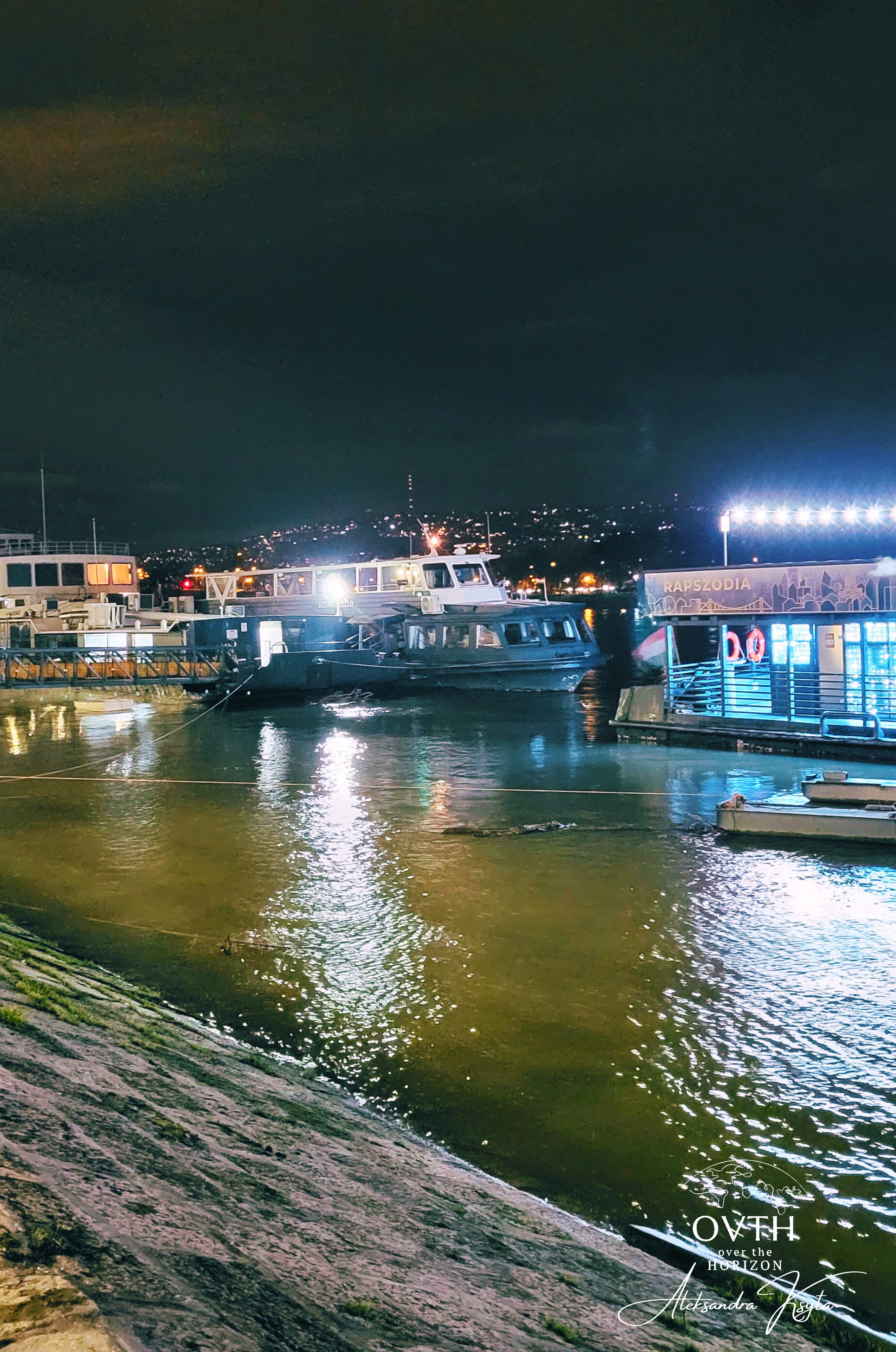 Otuleni szalikami, szliśmy dalej wzdłuż promenady, aż zatrzymaliśmy się przy jednym z katamaranów organizujących wieczorne rejsy po Dunaju.